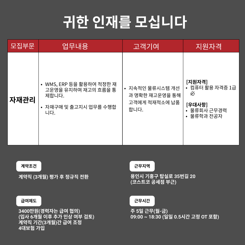 [자재관리] 물류 시스템 개선으로 동료를 도울 인재를 모십니다