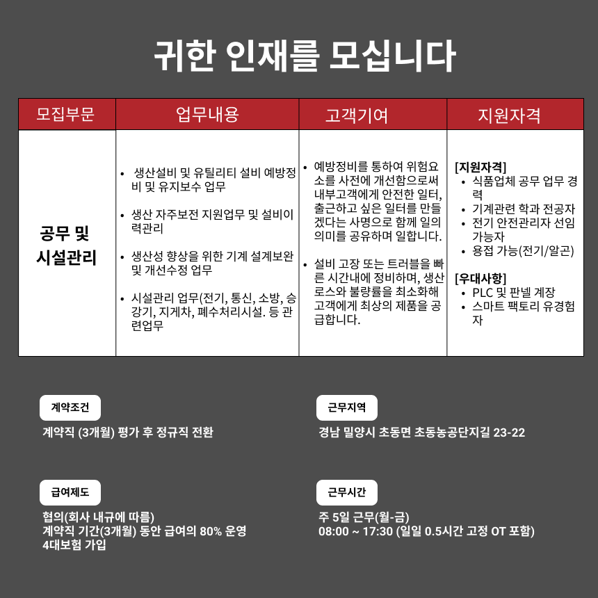 [밀양공무] 안전한 설비 운영으로 동료들에게 기여할 인재를 모십니다