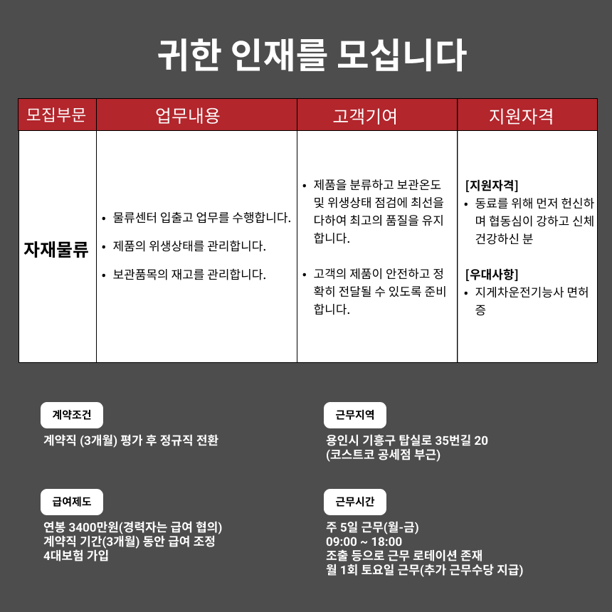 [자재물류] 동료와 소통하고 이해하며 협업할 인재를 모십니다